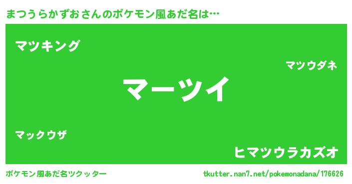 | 男性向けラノベタイトル風あだ名 | 『魔弾の王とまつうらかずお』 |