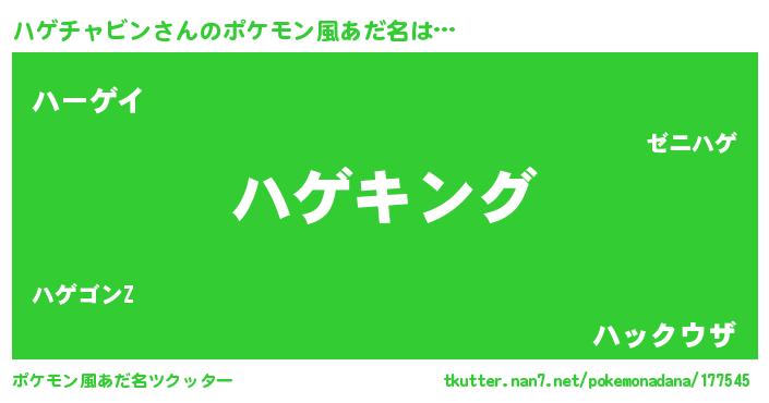 | ヘコむあだ名 | 『ハゲチャビン(小並感)』『ハゲお』 |
