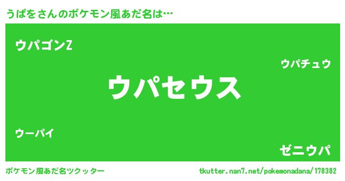 | 男性向けラノベタイトル風あだ名 | 『Re:うぱをから始める異世界生活』 |
