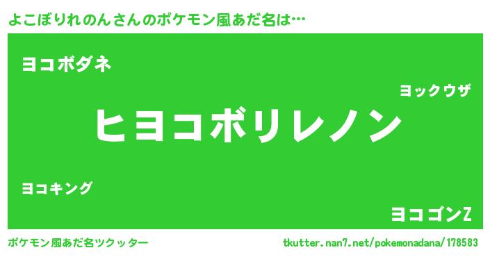 | 女子向けラノベタイトル風あだ名 | 『よこぼりれのんの卵を拾いまして』 |