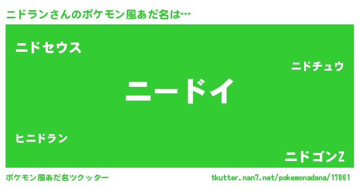| 意味不明あだ名 | 『住所不定無職ニドラン(91歳)』 |