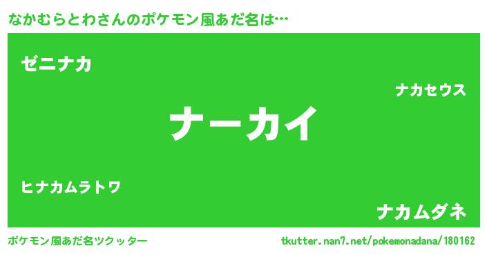 | 男性向けラノベタイトル風あだ名 | 『この素晴らしい世界になかむらとわを!』 |