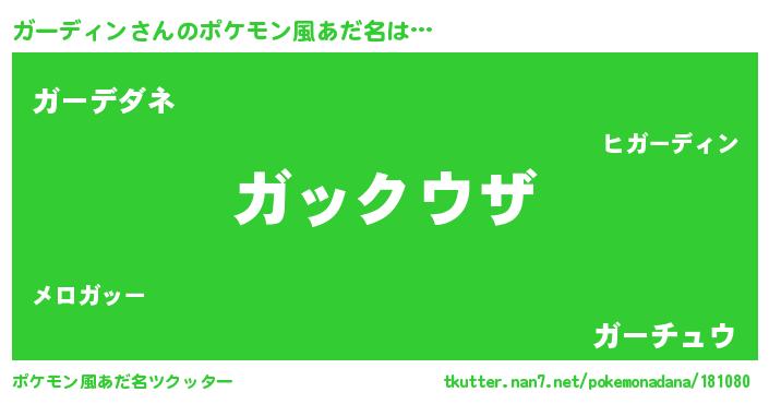 | 男性向けラノベタイトル風あだ名 | 『おまえをオタクにしてやるから、俺をガーディンにしてくれ! 』 |