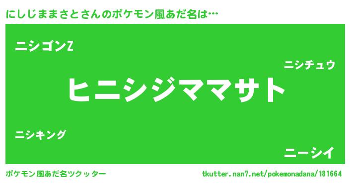 | 男性向けラノベタイトル風あだ名 | 『にしじままさとの嫁は女の子じゃないと思った?』 |