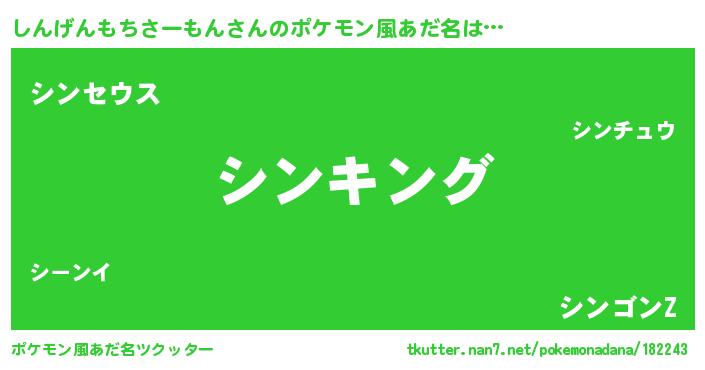 | 男性向けラノベタイトル風あだ名 | 『シンゲンモチサーモンスレイヤー』 |