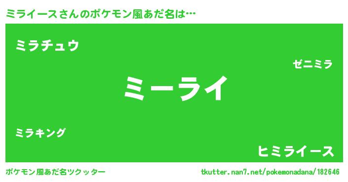 | ヘコむあだ名 | 『ミラにー』『ミラっ子』『豆乳』 |