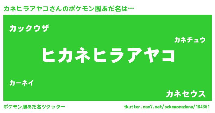 | 欧米人風あだ名 | 『ウサインカネヒラアヤコ』 |