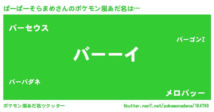 | 女子向けラノベタイトル風あだ名 | 『乙女ゲームの破滅フラグしかない悪役ばーばーそらまめに転生してしまった…』 |