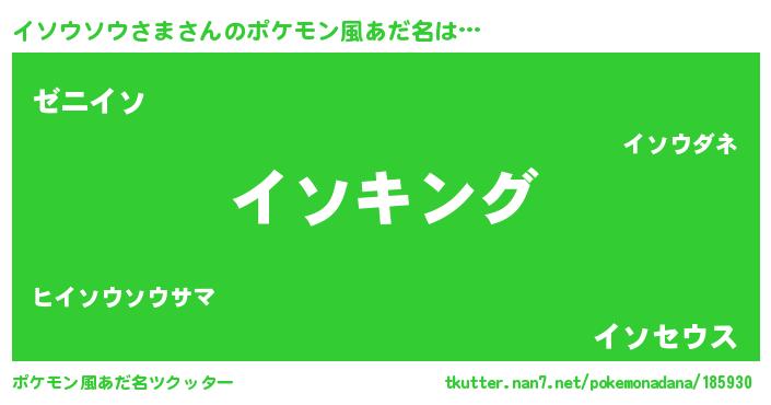 | 男性向けラノベタイトル風あだ名 | 『イソウソウサマスレイヤー』 |