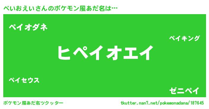 | 男性向けラノベタイトル風あだ名 | 『ダンジョンにぺいおえいを求めるのは間違っているだろうか』 |