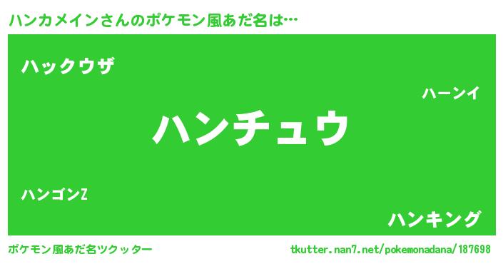 | 恥ずかしいあだ名 | 『プリティーハンカメイン』『ハンっちょ』 |