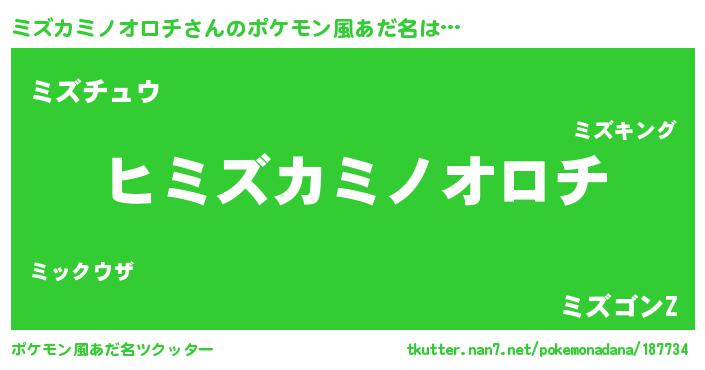 | 男性向けラノベタイトル風あだ名 | 『ミズカミノオロチの嫁は女の子じゃないと思った?』 |