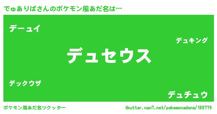 | 男性向けラノベタイトル風あだ名 | 『Re:でゅありぱから始める異世界生活』 |