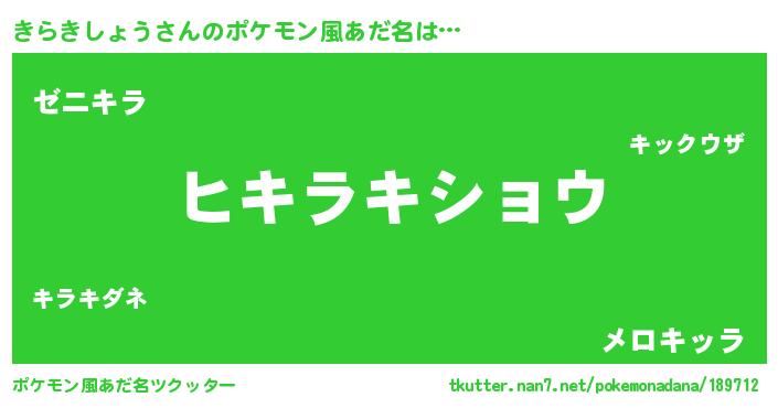 | 意味不明あだ名 | 『とにかく怪しいきらきしょう』 |