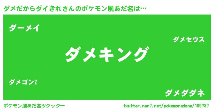 | 男性向けラノベタイトル風あだ名 | 『ダメだからダイきれ~年齢イコール彼女いない歴の魔法使い~』 |