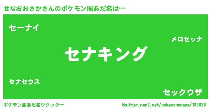 | 男性向けラノベタイトル風あだ名 | 『せなおおさか~年齢イコール彼女いない歴の魔法使い~』 |