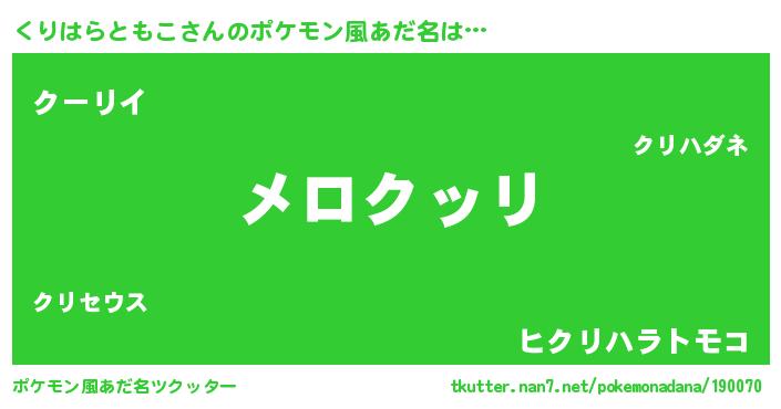 | 意味不明あだ名 | 『住所不定無職くりはらともこ(81歳)』 |