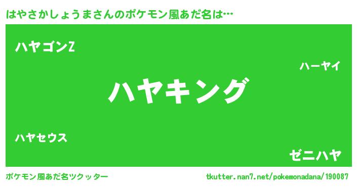 | 男性向けラノベタイトル風あだ名 | 『はやさかしょうま~年齢イコール彼女いない歴の魔法使い~』 |