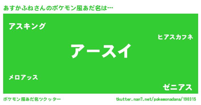 | ヒーロー風カッコイイあだ名 | 『仮面アスダー』『ネオアスカフネ』 |