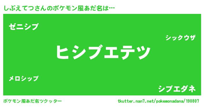 | 欧米人風あだ名 | 『ウサインしぶえてつ』 |