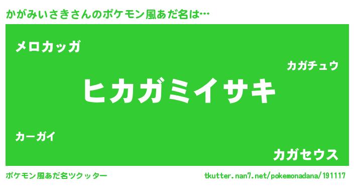 | ヒーロー風カッコイイあだ名 | 『天弓騎士カガ』『最強戦士カガミイサキ』 |