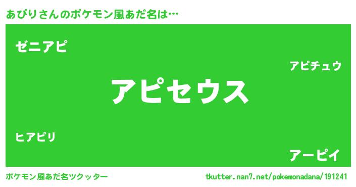 | ファンタジー風あだ名 | 『ゼアピトゥ』『アピディッシュ』 |
