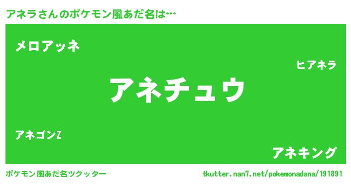 | 男性向けラノベタイトル風あだ名 | 『アネラの憂鬱』『はたらくアネラさま!』 |
