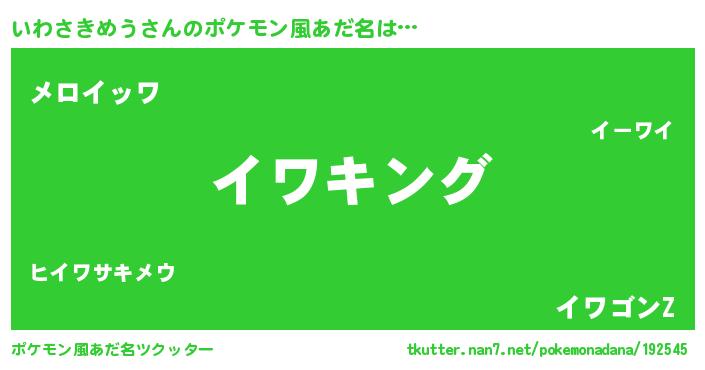 | 男性向けラノベタイトル風あだ名 | 『いわさきめう~年齢イコール彼女いない歴の魔法使い~』 |