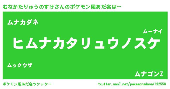 | 男性向けラノベタイトル風あだ名 | 『ダンジョンにむなかたりゅうのすけを求めるのは間違っているだろうか』 |