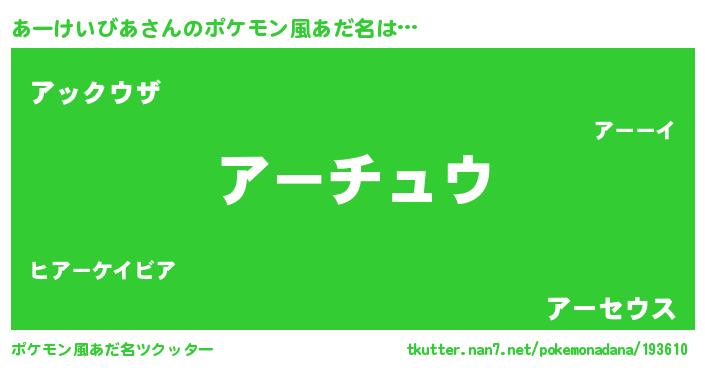 | 男性向けラノベタイトル風あだ名 | 『あーけいびあの憂鬱』 |