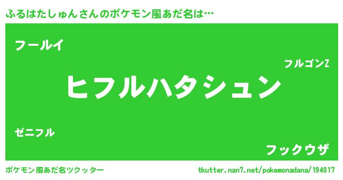| 女子向けラノベタイトル風あだ名 | 『ふるはたしゅん様がみてる』 |