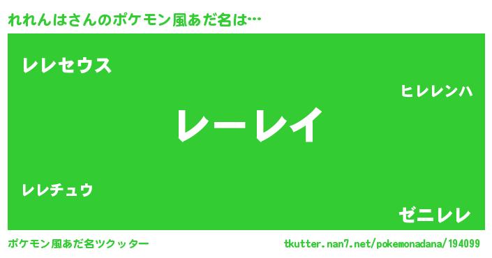 | 男性向けラノベタイトル風あだ名 | 『魔弾の王とれれんは』 |