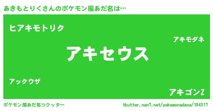 | 意味不明あだ名 | 『自称あきもとりく』 |