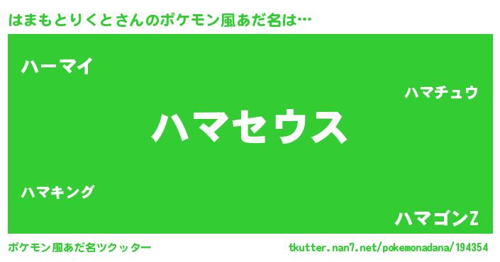 | 男性向けラノベタイトル風あだ名 | 『Re:はまもとりくとから始める異世界生活』 |
