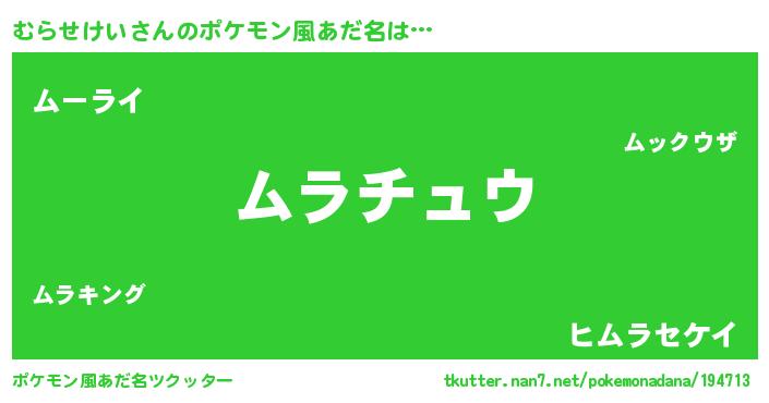 | 男性向けラノベタイトル風あだ名 | 『むらせけいの憂鬱』 |
