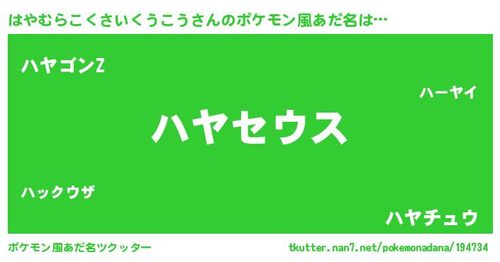 | 意味不明あだ名 | 『自称はやむらこくさいくうこう』 |