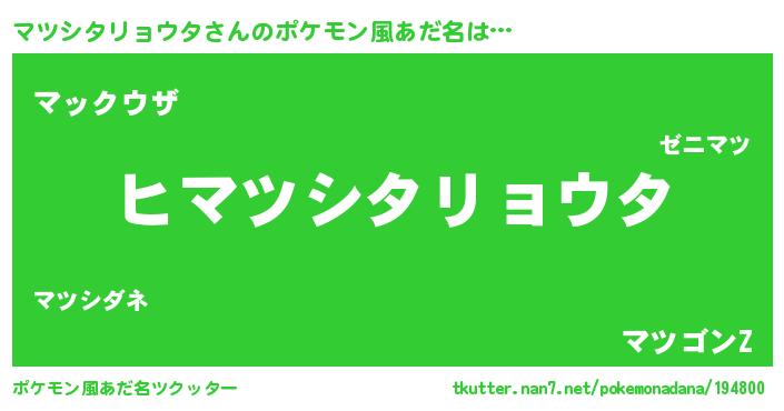 | 意味不明あだ名 | 『とにかく怪しいマツシタリョウタ』 |