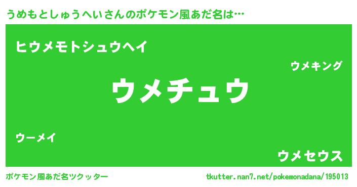 | 男性向けラノベタイトル風あだ名 | 『うめもとしゅうへいの憂鬱』 |