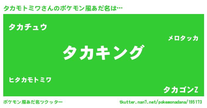 | 自動車の名前っぽいあだ名 | 『タールスカイス』『タカティマ』 |