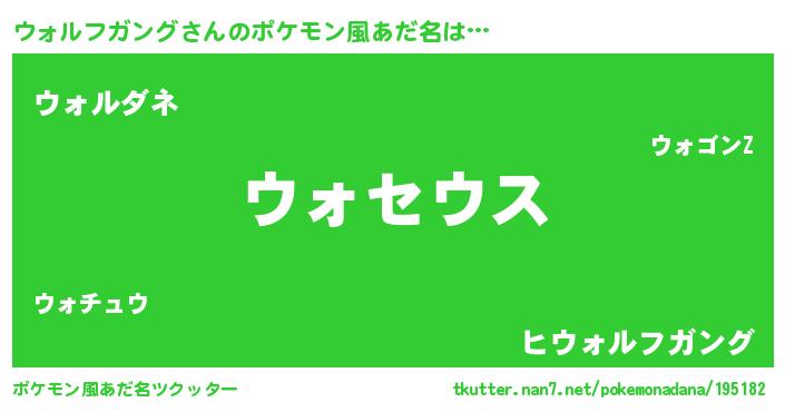 | 意味不明あだ名 | 『自称ウォルフガング』 |