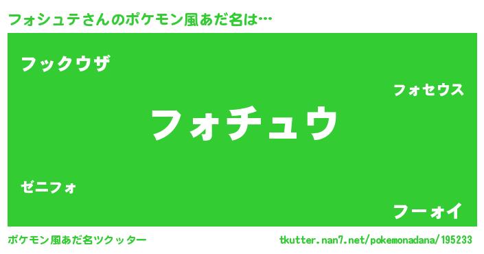 | 意味不明あだ名 | 『ペロリンフォシュテ』『自称フォシュテ』 |