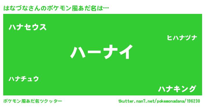 | ヒーロー風カッコイイあだ名 | 『仮面ハナダー』『最強戦士ハナヅナ』 |