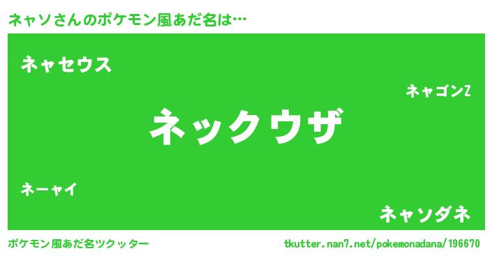 | ヒーロー風カッコイイあだ名 | 『正義の使者ネャソ』『仮面ネャダー』 |