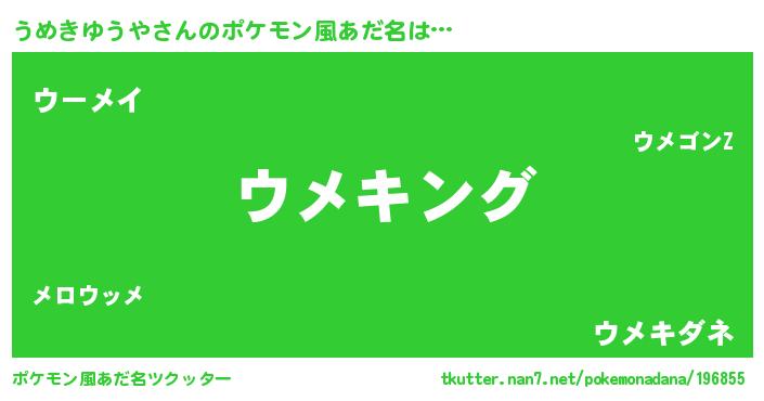 | 男性向けラノベタイトル風あだ名 | 『うめきゆうや~年齢イコール彼女いない歴の魔法使い~』 |