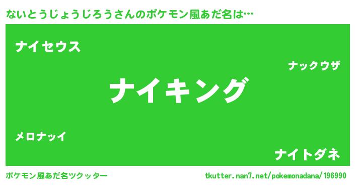 | 男性向けラノベタイトル風あだ名 | 『ないとうじょうじろう~年齢イコール彼女いない歴の魔法使い~』 |