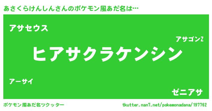 | 女子向けラノベタイトル風あだ名 | 『あさくらけんしんの卵を拾いまして』 |