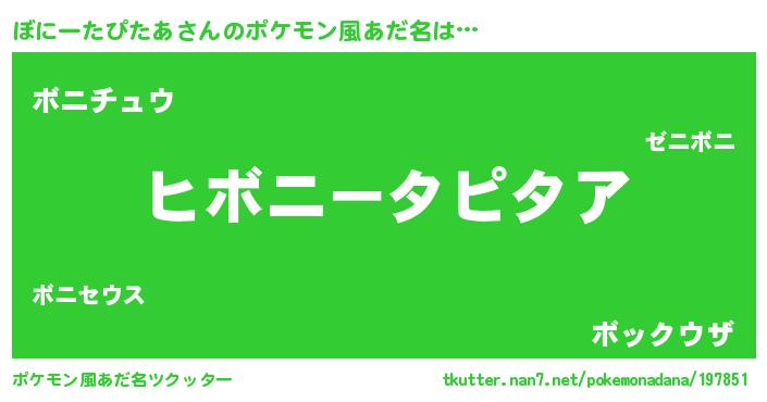 | 男性向けラノベタイトル風あだ名 | 『ぼにーたぴたあの嫁は女の子じゃないと思った?』 |