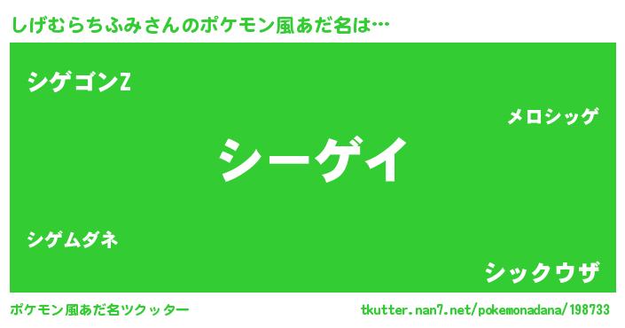 | 意味不明あだ名 | 『住所不定無職しげむらちふみ(79歳)』 |