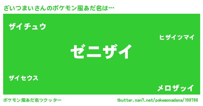 | 男性向けラノベタイトル風あだ名 | 『ざいつまいという概念が存在しない退屈な世界 』 |