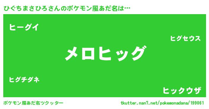 | 男性向けラノベタイトル風あだ名 | 『うちのひぐちまさひろが世界を掌握している!』 |
